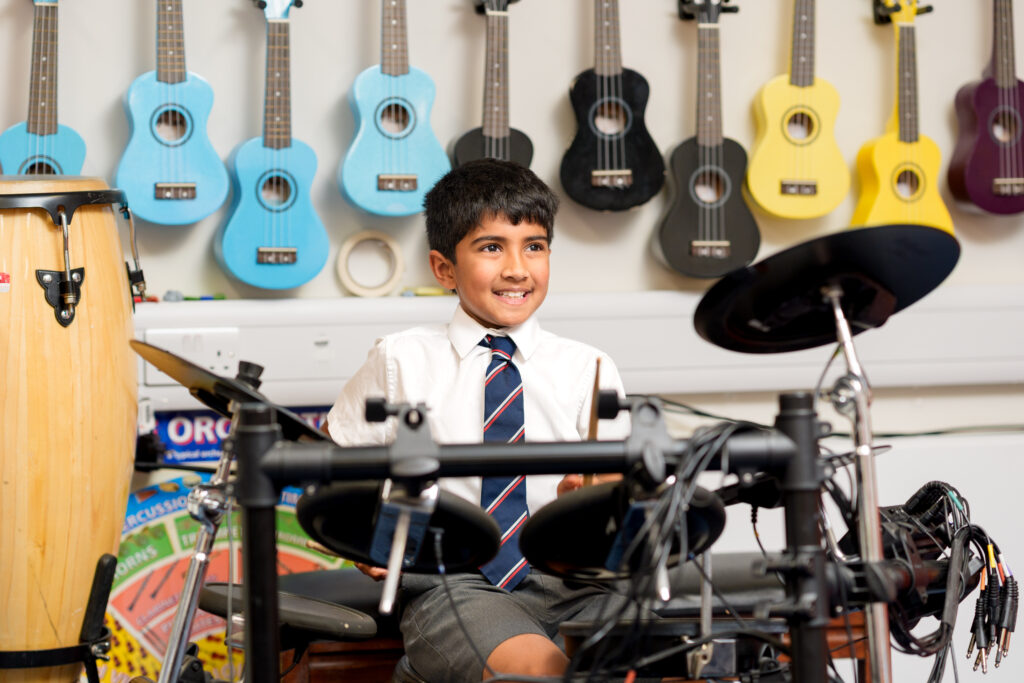 In Form 5 children start to learn the ukulele as a whole class group and many choose to continue playing in Form 6, or even take up th guitar.