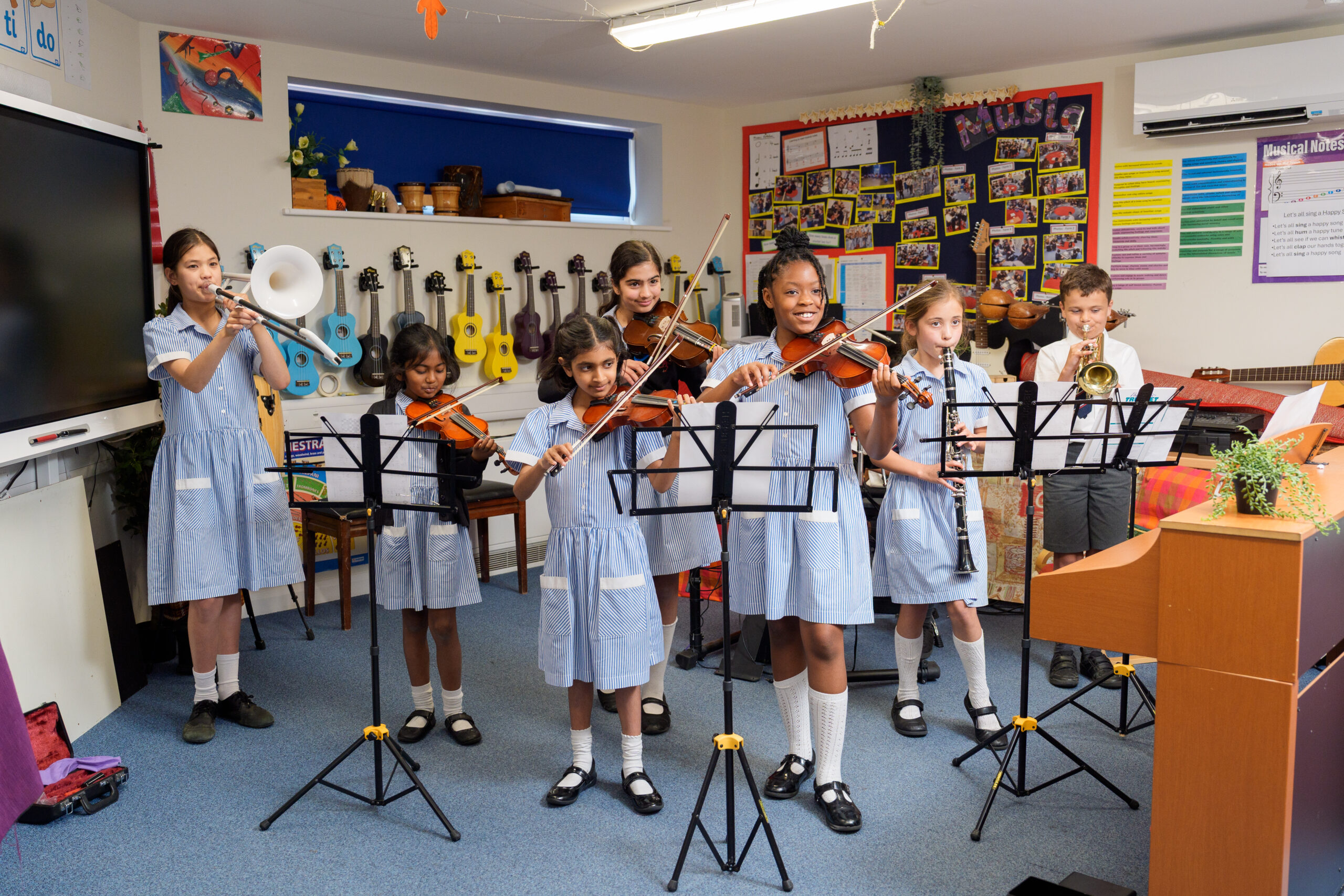 There are currently 3 ‘paid for’ ensembles which meet once a week to practice and prepare for various performances throughout the year. These are the string group – Fiddle Fiesta, and the Junior and Senior Rhythm Ensembles. These groups cater for children from beginner standard upwards (depending on the instrument), giving the children the opportunity to develop their playing, build their confidence and learn to work as a team. The groups perform in assemblies and in various School concerts throughout the year.